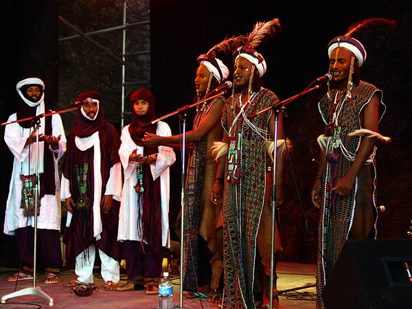 Etran Finatawa, le blues des nomades du désert au World Music Festival d'Oron, 29 juillet 2005. Photo ID 10007654.